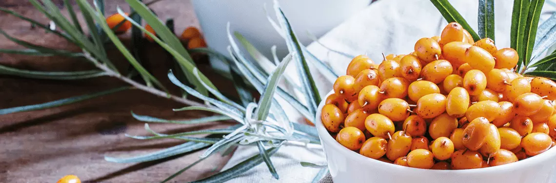 Roślina ta jest uprawiana głównie w Europie i Azji. Olej produkowany jest z pomarańczowych, mięsistych owoców, które potrafią przetrwać zimę. Jego największą zaletą jest zawartość kwasów tłuszczowych omega-7, które są skuteczne w leczeniu chorób serca czy cukrzycy typu 2. Owoce rośliny są bogate w witaminy A, B1, B2, C, D, E i K, a także w kwas foliowy, karotenoidy, flawonoidy, aminokwasy, fenole, 20 pierwiastków mineralnych oraz niespotykany profil kwasów tłuszczowych, ponieważ może to być jedyna roślina, która zawiera wszystkie cztery nienasycone kwasy: omega-3, omega-6, omega-7 oraz omega-9.