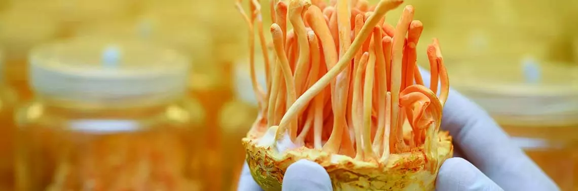 Pierwszymi, którzy dostrzegli zdrowotne właściwości grzyba, byli himalajscy pasterze. Zaobserwowali oni, że ich trzoda po wypasaniu na łąkach w niego obfitujących, staje się i aktywna. Wzmianki o tym datuje się na ok. V w. n.e. Od tamtego czasu Cordyceps sinensis był w Chinach stosowany jako lek, a jego cena była kilkakrotnie wyższa, niż cena srebra. Mieszkańcy Chin, Tybetu, Nepalu oraz Indii od wieków spożywali Cordyceps spp. w celu adaptacji organizmu do trudnych warunków wysokogórskich, takich jak niska temperatura otoczenia, wysokie ciśnienie atmosferyczne, czy zmniejszona zawartość tlenu w środowisku. Tradycyjna medycyna chińska zaleca stosowanie O. sinensis w przypadku licznych chorób człowieka, takich jak: choroby nowotworowe, cukrzyca, choroby układu krążenia i układu oddechowego, zaburzenia funkcji wątroby i nerek, choroby zakaźne i pasożytnicze, a także dysfunkcje seksualne.